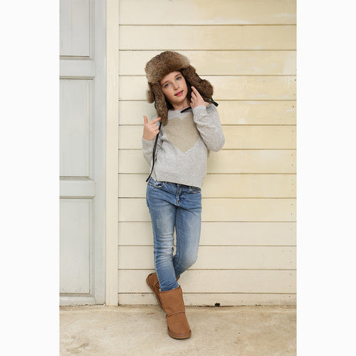 Ugg Kids Vintage Rodeo Leather Rabbit Fur Aviator Hat
