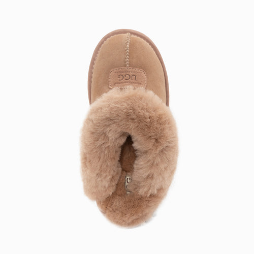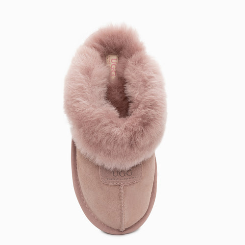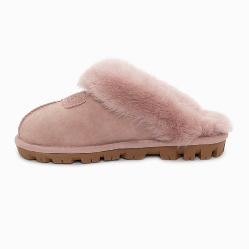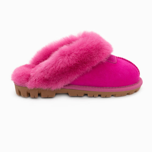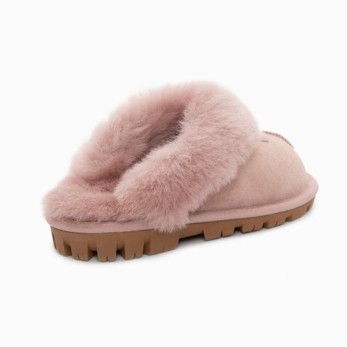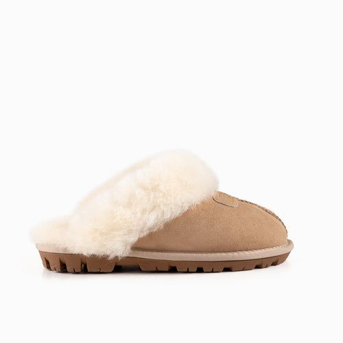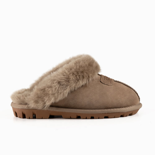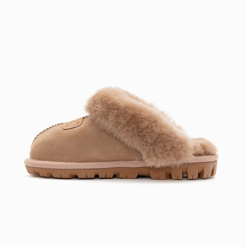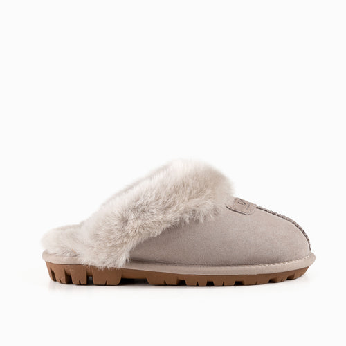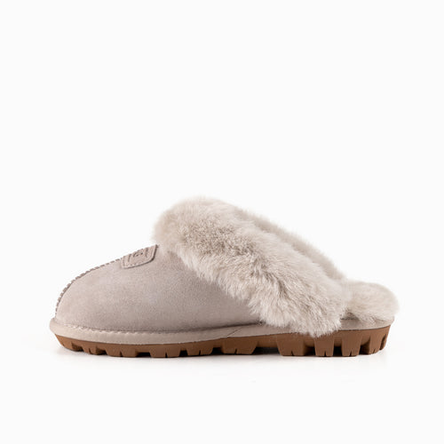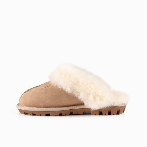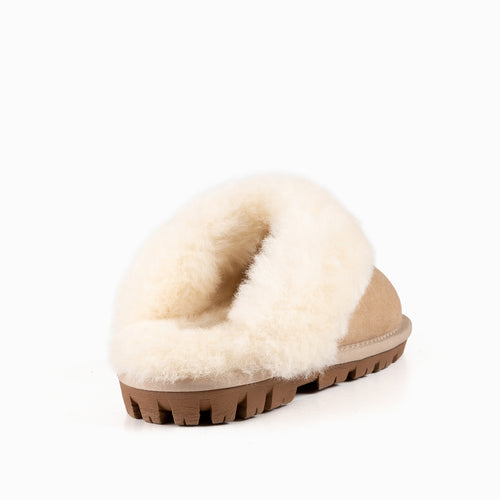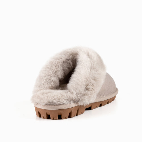 Beautiful sheepskin slipper with open back, logo detail, sheepswool lining and sturdy rubber soles. The Coquette slipper is perfect for keeping your feet cosy and warm!