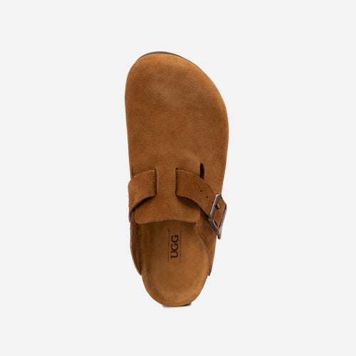 Introducing the UGG Aussie Soft Footbed Unisex Slipper, the epitome of comfort and luxury! Designed with a cow skin upper, these slippers exude both style and durability. The cow skin lining adds a plush feel, surrounding your feet in pure comfort. The cow skin insole offers an incredibly soft and cushioned experience, providing support with every step. The EVA outsole ensures excellent grip and flexibility for indoor and outdoor use. Available in Taupe and Chestnut, these slippers are versatile and perfect for any occasion. Indulge in the ultimate comfort and treat your feet to the premium quality of UGG Aussie Soft Footbed Unisex Slippers!