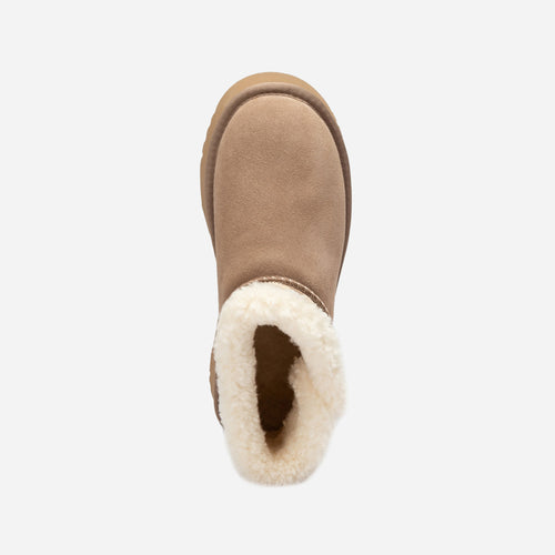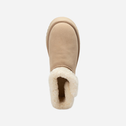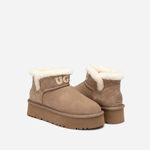 Refresh your winter wardrobe with the Ugg Bondi Matelassé Platform Shearling Ultra Mini Boots. Designed to balance style and comfort, this modern ultra mini silhouette features elegant matelassé detailing and a subtle platform sole for a contemporary edge. The smooth cow suede upper offers a premium look, while the plush sheepskin lining and insole provide natural warmth and soft cushioning. Finished with a lightweight EVA outsole, this pair delivers everyday comfort with elevated style, perfect for relaxed outings and casual layering.