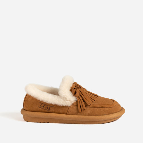 Introducing Ugg Deanna Tassel Loafer, where sophistication meets comfort in every step. Crafted from supple Cow Suede, these loafers are a statement of elegance and style. The genuine Sheepskin lining and insole provide a plush, cushioned experience, enveloping your feet in warmth and coziness. The meticulous craftsmanship ensures durability and luxury. Whether it閳ユ獨 a professional setting or a chic night out, these loafers offer versatility and grace. Adorned with tassel accents, they exude a touch of timeless charm. The sturdy Eva outsole provides a reliable grip, making them ideal for all occasions. Ugg Deanna Tassel Loafer: Elevate your style with unmatched comfort and class.