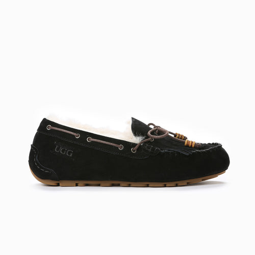 Versatile and stylish in equal measure, these fabulous moccasins are designed with comfort in mind. Featuring a cute bow, bead and tassel detail with soft sheep wool lining, these are your everyday essentials to love!