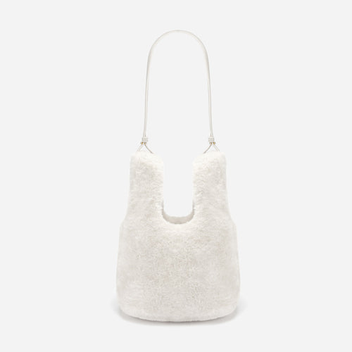 The Ugg JJ Fluffy Knot Bag delivers a modern, charming look with its unique knotted handle and ultra-plush finish. Crafted from premium synthetic fur blended with ultra-fine fibers, it offers an exceptionally soft, cloud-like texture while remaining lightweight and easy to carry. The compact silhouette provides enough room for daily essentials, making it a stylish choice for casual outings or evening looks. Its tactile exterior adds a playful yet sophisticated touch, elevating any outfit with cozy appeal. Designed for versatility and comfort, the JJ Fluffy Knot Bag stands out as a contemporary accessory that blends fun, function, and fashion.