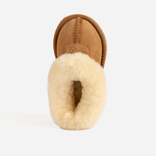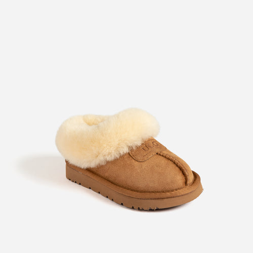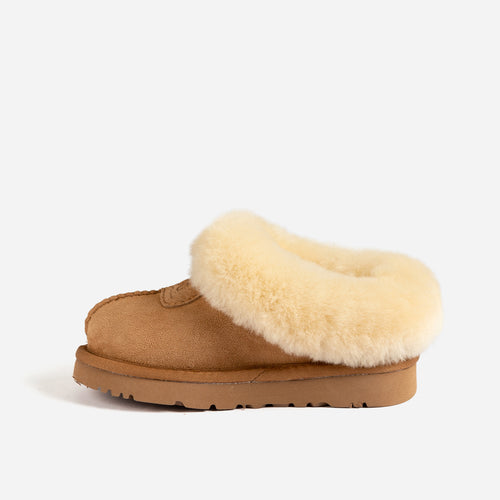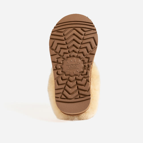 Elevate your little one's comfort with the Ugg Kids Brisbane Shearling Slipper, where luxury meets playfulness. Carefully crafted from premium Double Face Sheepskin, the upper provides unmatched softness and durability, ensuring little feet are wrapped in a cozy embrace. The genuine Sheepskin lining and insole deliver exceptional warmth and cushioning, creating a cloud-like experience for every step. Designed for active adventures, the slipper features a sturdy Eva outsole, offering reliable grip and durability on various surfaces. Whether indoors or outdoors, these slippers provide the perfect blend of comfort and support for your child's growing feet. Give them the gift of comfort and style with Ugg Kids Brisbane Shearling Slippers.