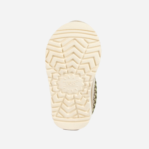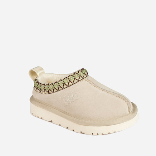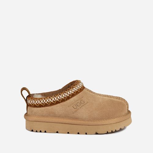 Introducing the UGG Kids Sydney Slipper, where comfort and style come together for your little ones! Crafted with care, the cow suede upper exudes sophistication, making these slippers perfect for both indoor and outdoor wear. The genuine sheepskin lining and insole provide a cozy and soft embrace for tiny feet, keeping them warm and happy all day long. With the sturdy EVA outsole, your kids can play with confidence, enjoying durability and reliable traction. Pamper their feet with the luxurious comfort of UGG Kids Sydney Slippers, and watch them revel in joy and comfort during their everyday adventures!