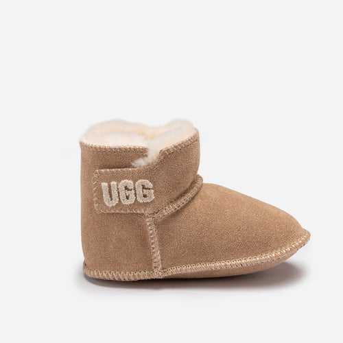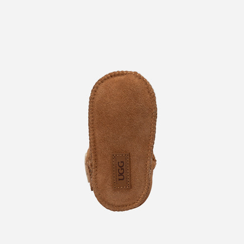 Keep little feet cozy and stylish with the Ugg Logo Baby Boot. Featuring a soft cow suede upper, this boot is gentle yet durable for tiny toes. The plush sheepskin lining and insole provide natural warmth and cushioning, ensuring comfort throughout the day. A cowskin outsole adds gentle protection and flexibility for early steps. Finished with a subtle logo detail, this baby boot combines classic Ugg style with practical comfort for growing feet.