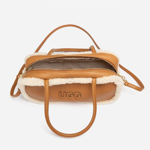 The Ugg Omi Top-Handle Leather Bag is crafted from premium double face sheepskin and cowskin, offering a refined balance of structure, softness, and durability. Its elegant top-handle silhouette delivers a polished look suitable for both everyday wear and elevated occasions. The natural texture of the materials adds depth and luxury, while the spacious interior provides practical organization for daily essentials. Lightweight and comfortable to carry, this bag seamlessly blends style with functionality. With meticulous attention to detail and quality craftsmanship, the Omi Top-Handle Bag is a timeless accessory that enhances any wardrobe with understated sophistication and long-lasting performance.