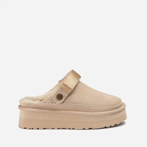 Step up your comfort and style with the UGG Oz Platform Shearling Clog. Made from durable cow suede and lined with plush sheepskin, these clogs provide warmth and soft cushioning for all-day wear. The sheepskin insole enhances comfort, while the EVA outsole offers lightweight support and flexibility. With its sleek platform design, this clog elevates your look while keeping you cozy—perfect for casual outings or lounging in style.