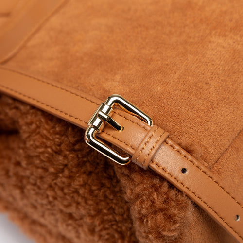 Meet the UGG Pompom Fluffy Backpack, where cozy meets chic. Crafted from luxurious sheepskin leather and suede, this backpack features a plush, fluffy exterior that's both eye-catching and soft to the touch. The durable polyester lining ensures your belongings are well-protected, making it perfect for daily adventures or casual outings. With its playful pompom detail and stylish design, this backpack is a fun addition to any wardrobe.