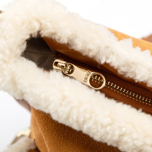 Adventure meets luxury with the Ugg Shearling Safari Bag. Crafted from premium suede and soft sheepskin, this versatile bag is perfect for everyday explorations or weekend getaways. Plush, durable, and effortlessly stylish, it adapts seamlessly from casual daywear to chic evening looks.