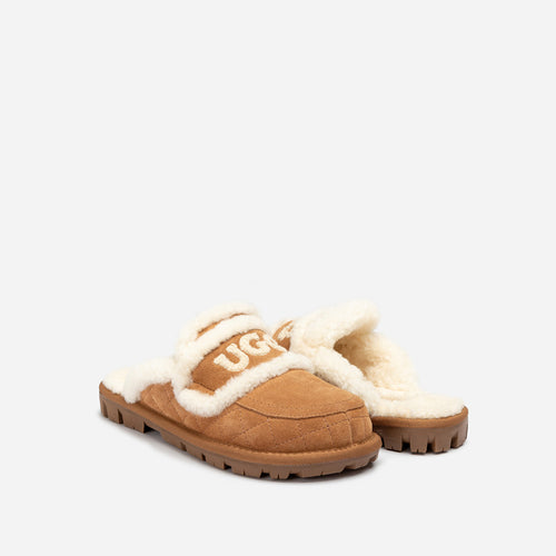 Slip into luxurious comfort with the UGG Violet Matelassé Shearling Slipper. Made with soft cow suede and lined with plush 100% sheepskin, this slipper offers unparalleled warmth and softness. The sheepskin insole adds extra cushioning for all-day comfort, while the lightweight EVA outsole provides flexibility and grip. Featuring a chic matelassé quilted design, this slipper is both stylish and cosy, perfect for lounging at home or running quick errands.