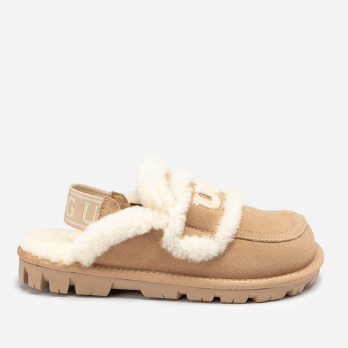 Experience cozy luxury with the Ugg Violet Shearling Slipper, designed for ultimate comfort and versatile wear. The premium cow suede upper is soft and durable, while the plush sheepskin lining and insole provide natural warmth and cushioning for all-day comfort. Featuring an elastic logo detail and a detachable design, this slipper adapts to your style and needs effortlessly. The lightweight EVA outsole adds flexible support, making it perfect for indoor lounging or quick trips outside.